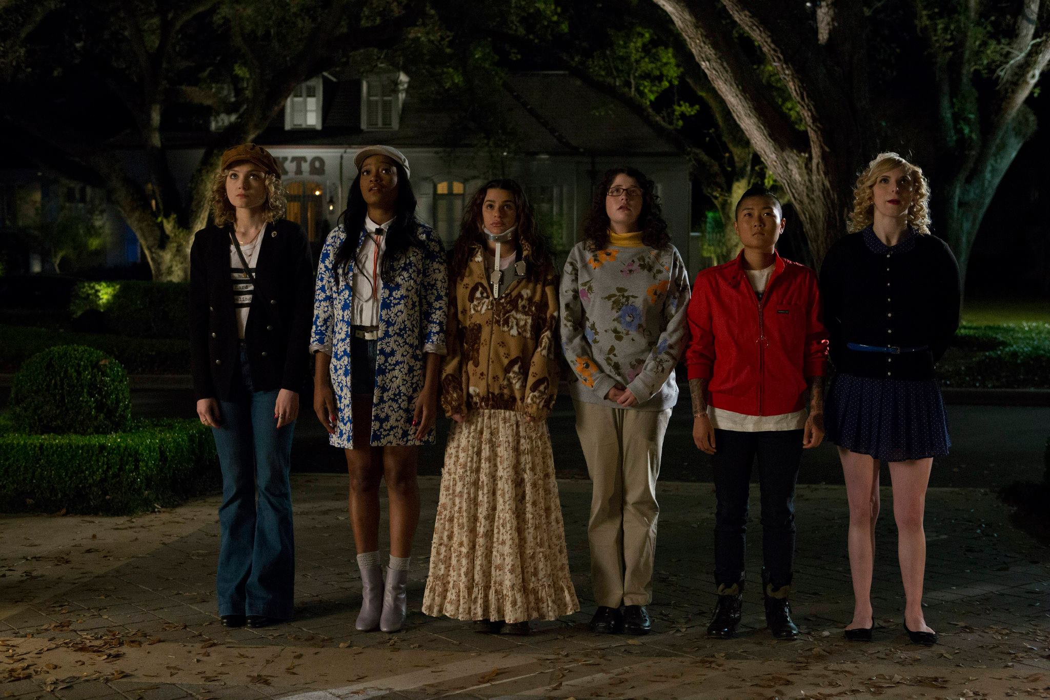En el caso de Scream Queens, la acción se sitúa en un campus universitario, y concretamente en Kappa Kappa Tau; una hermandad altamente elitista, que ve sus planes truncados cuando la decana (Jamie Lee Curtis) obliga a aceptar a todas las aspirantes del nuevo curso que pidan formar parte. Así, tenemos a Grace, la chica normal que está allí para conectar con su difunta madre -que fue miembro en el pasado-; una afroamericana con aspiraciones de poder y una fuerte autoestima; la chica rara con aparato para la espalda; una sorda enamorada de Taylor Swift; una lesbiana asiática; y una chica obsesionada con las velas. Todo esto para desolación de la presidenta de Kappa, Chanel (Emma Roberts) una bitch en toda regla, y sus minions, Chanel #2, #3 y #5 (la #4 dejó la hermandad y murió).