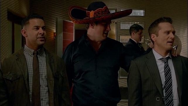 “¿A terreno personal pasa algo sustancioso?”, os preguntaréis. Pues bien: Alexis empieza a enfadarse con su padre por su manía de perseguir a Beckett, Martha le da un consejo de amiga a Kate sobre la estupidez que está cometiendo de tener al hombre más confiable del mundo alejado de sus problemas, Castle da una fiesta mexicana porque sí, porque le apetece, quedando esa escena completamente descolgada de la trama (no duerme en el loft porque le recuerda a su mujer, pero luego hace estas cosas), Kate llama por teléfono a su marido, tras dejarlo en la estacada y pedirle tiempo hasta la saciedad, para cachondearse de lo mal que le ha salido la captura de un sospechoso. Ah, y lo más importante: aparece Carl. ¿Y ese quién es? Pues esa, mis queridos amigos, es una pregunta fantástica, yo tampoco lo sé, pero Beckett debe conocerle desde el parvulario porque le recibe tirada en el sofá mientras le hace una consulta sobre drogas. Y luego se atreve a comentar que tiene miedo de que no le tomen en serio como capitana. En fin.