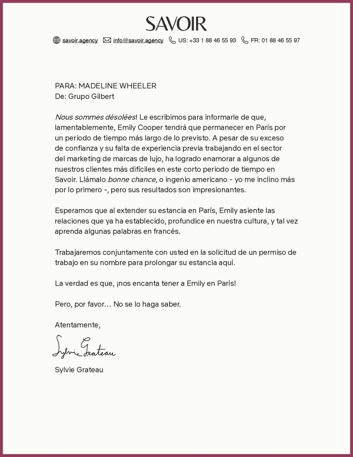 SEGUNDA TEMPORADA PARA ‘EMILY IN PARIS’ Chris Pattersonnoviembre 11, 2020NOTICIAS Navegación de entradas AnteriorSiguiente Netflix nos acaba de comunicar la renovación de su recién estrenada Emily in Paris para una segunda temporada. Con esta carta de la agencia SAVIOR nos lo confirman. Comparte esto: Haz clic para compartir en Facebook (Se abre en una ventana nueva) Facebook Haz clic para compartir en X (Se abre en una ventana nueva) X Haz clic para compartir en WhatsApp (Se abre en una ventana nueva) WhatsApp Haz clic para compartir en Telegram (Se abre en una ventana nueva) Telegram Haz clic para compartir en Reddit (Se abre en una ventana nueva) Reddit Haz clic para compartir en Tumblr (Se abre en una ventana nueva) Tumblr Haz clic para enviar un enlace por correo electrónico a un amigo (Se abre en una ventana nueva) Correo electrónico Me gusta Cargando... Relacionado