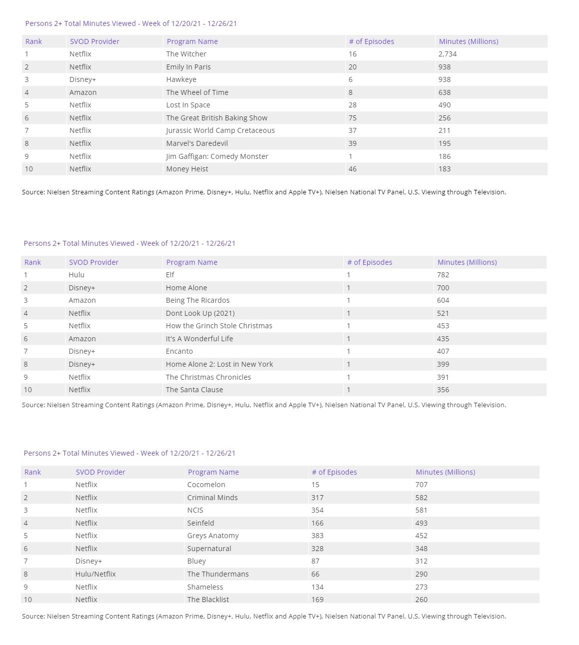 Audiencias streaming: 20/12/2021 – 26/12/2021.