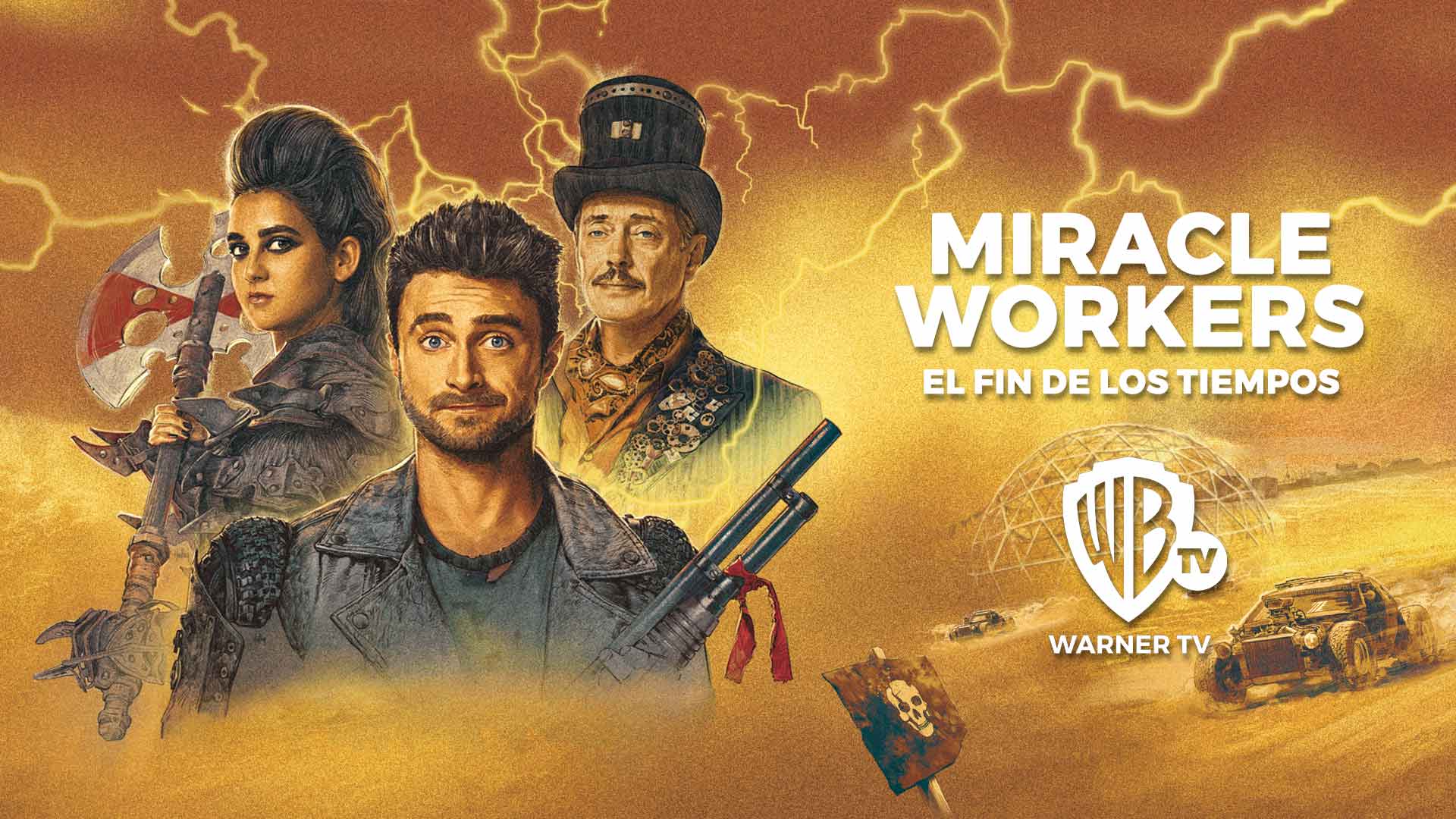 El lunes 11 de septiembre a las 22:00h, Daniel Radcliffe y Steve Buscemi llegan a Warner TV con Miracle Workers: El fin de los tiempos, la cuarta entrega de su antología cómica en la que ambos actores interpretan a diferentes personajes en cada temporada y desarrollan la acción en un entorno distinto. Primero fue el paraíso, luego la Edad Media, después recorrimos la ruta de Oregón y ahora es el momento de viajar a una distopía postapocalíptica al más puro estilo Mad Max.
